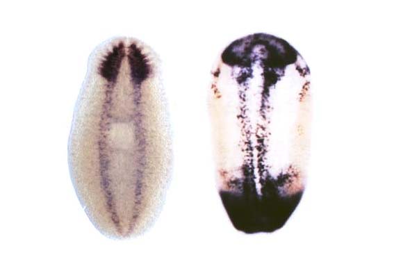 プラナリアの集中神経系とカエルの一次神経系の構造を比較したもの。腹側からみたものと背側からみたものとの違いがあるが前後軸については良く似ていることに気がつく。Zoological Scienceの第15卷の表紙に採用された思い出深い写真である。